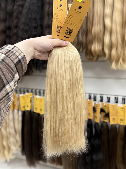 Это отборное сырье, которое по оттенку доходит до самого светлого оттенка блонда без потери качества из всех стандартных линий.